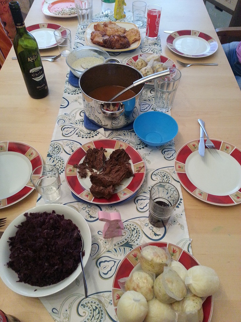 Bild 1: Das Ergebniss unseres Kochabends - ein voller Tisch mit lecker Sauerbraten